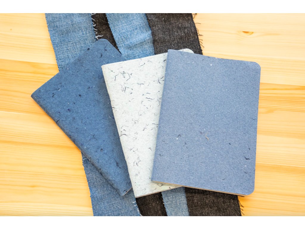 Desky sešitu obsahují riflovinu, která jim dodává texturu a originální vzhled. Každý kus tak získává neopakovatelný rukopis materiálu.