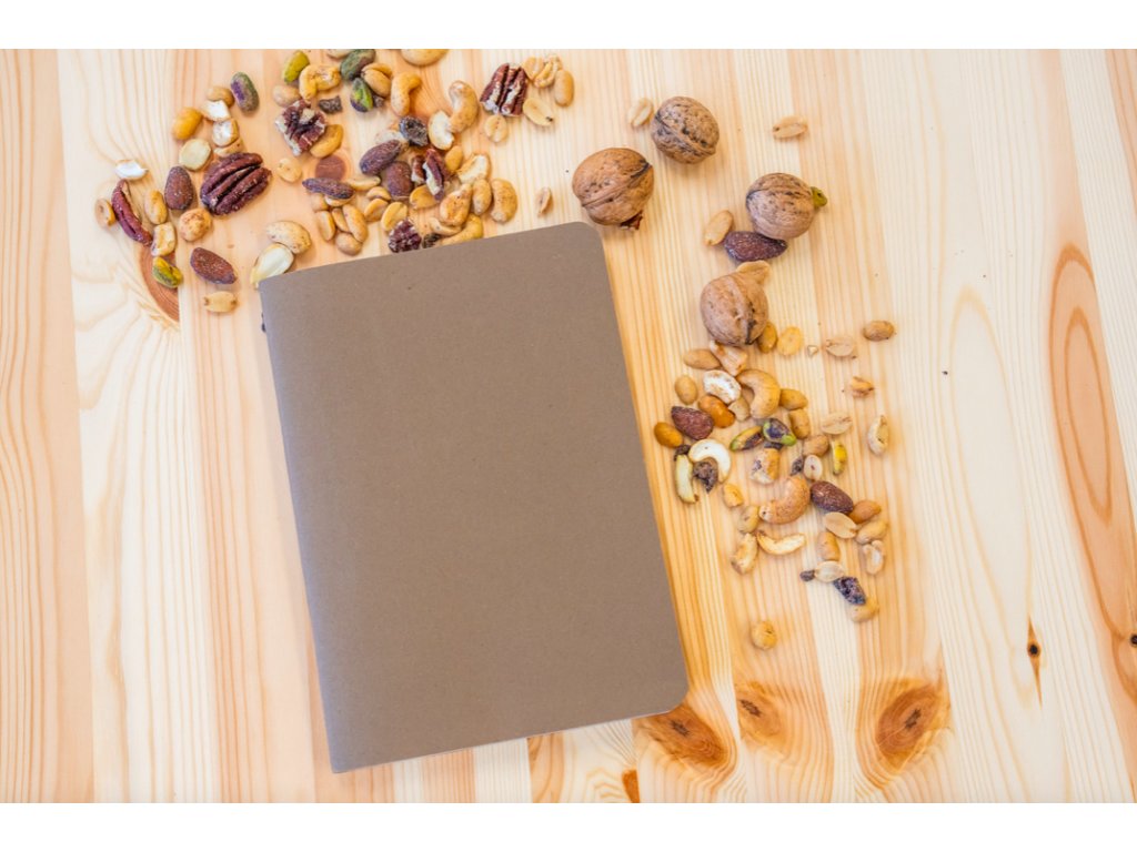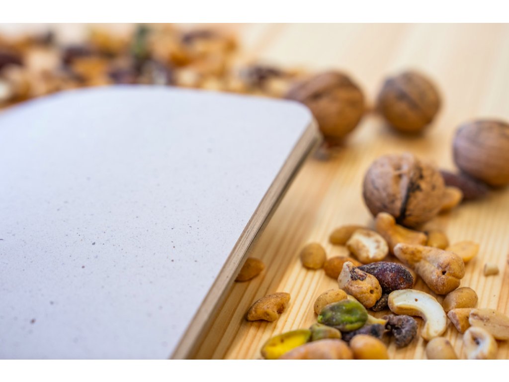 Desky obsahují 15 % ořechů, vnitřní listy 15 % vinné révy, a celý sešit je vyroben s respektem k principům udržitelné výroby.