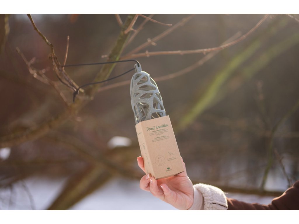Tohle krmítko zachraňuje životy – bez přehánění. Díky němu dokážete přikrmovat ptáčky, aniž by riskovali uvíznutí v síťce. Navíc je toto krmítko vyrobeno z recyklovaných nápojových kartonů a rozhodně není žádný cestovatel, narodilo se v Evropě.