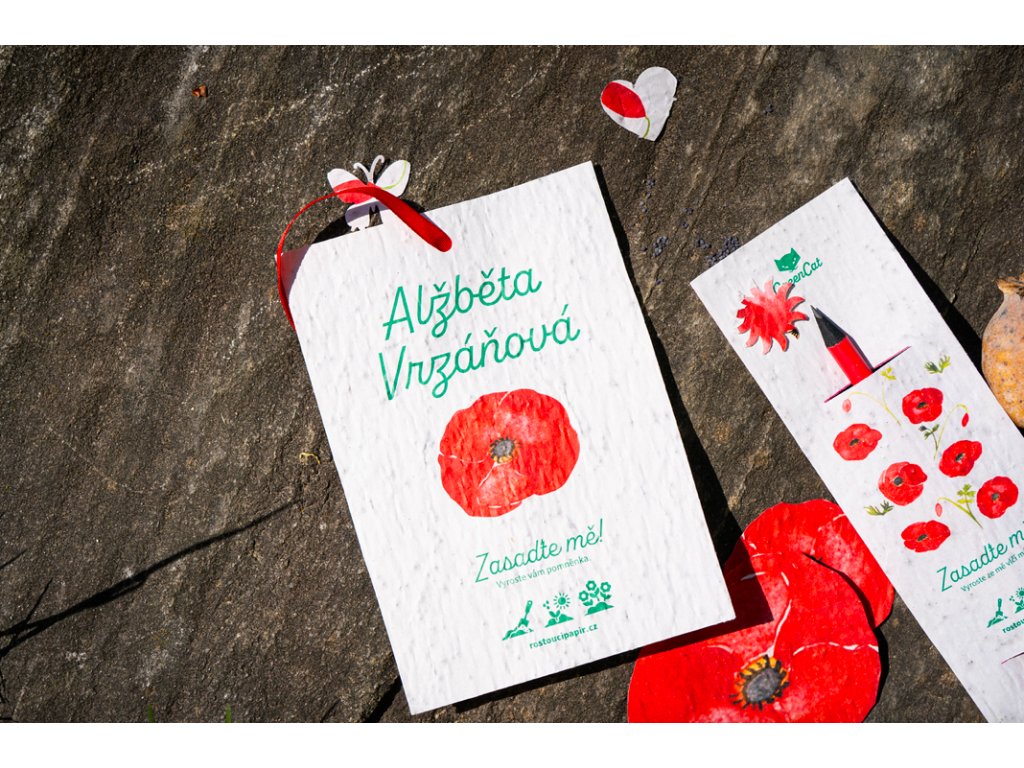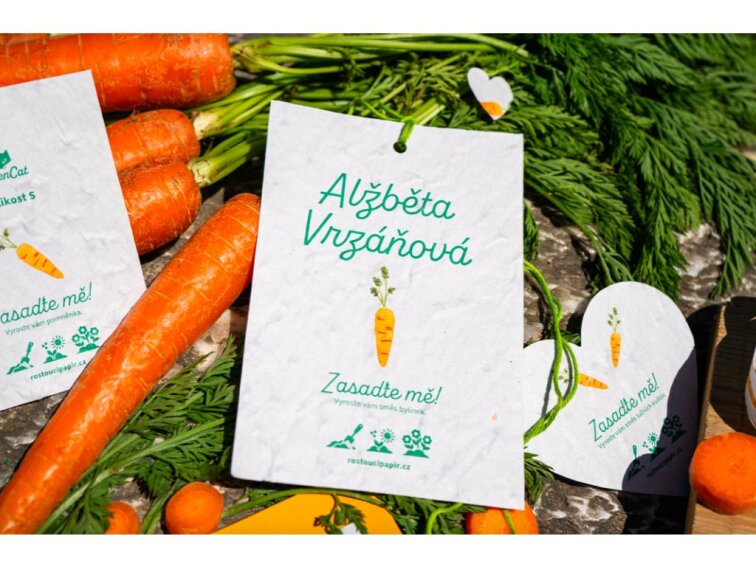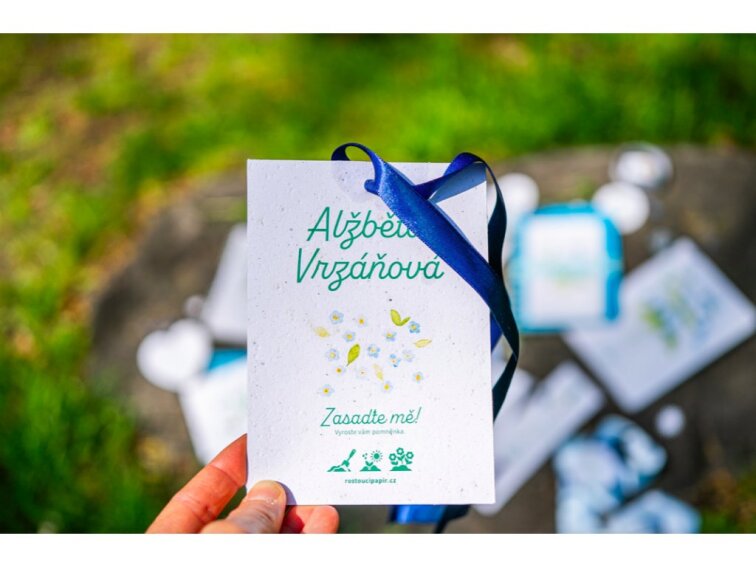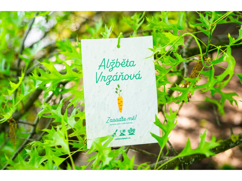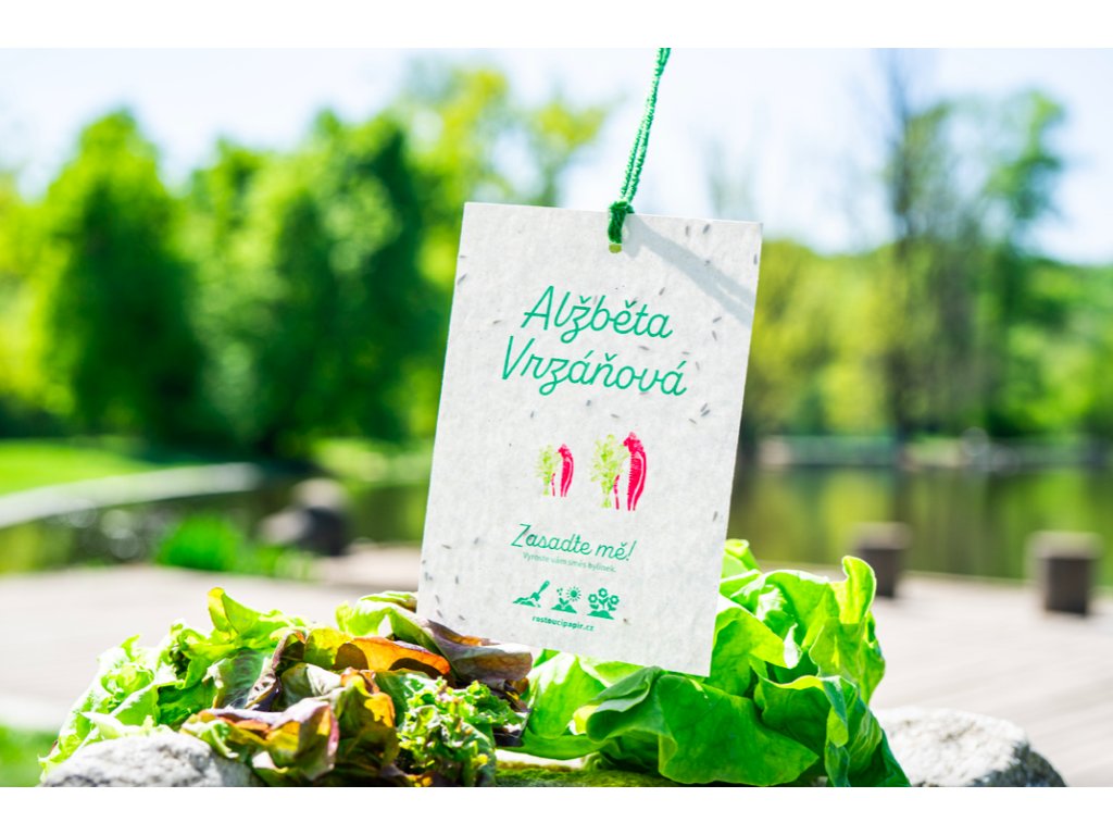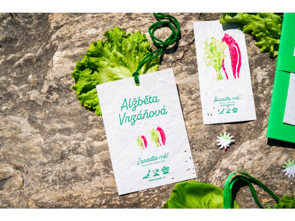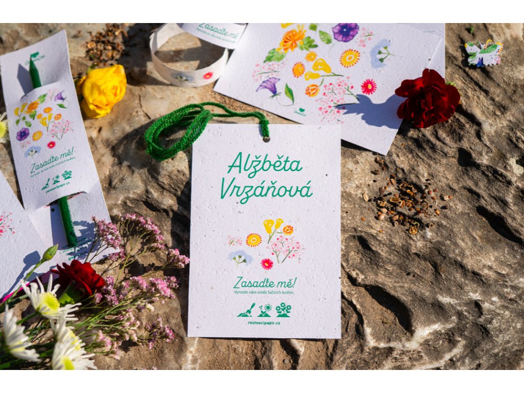 Tato jmenovka je z rostoucího papíru – po použití ji zasaď a nech vykvést květ.