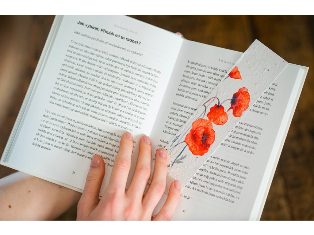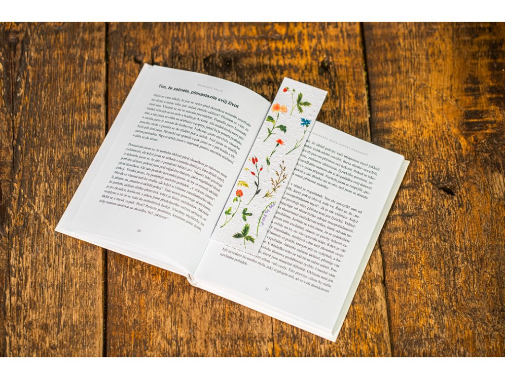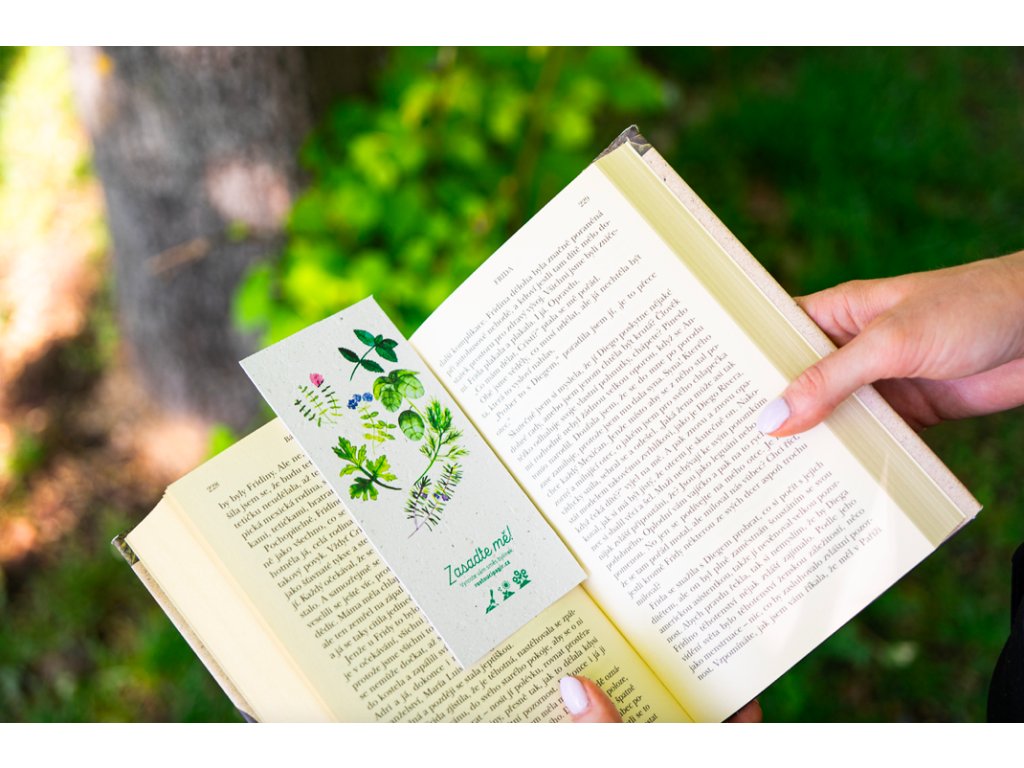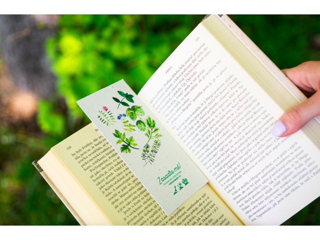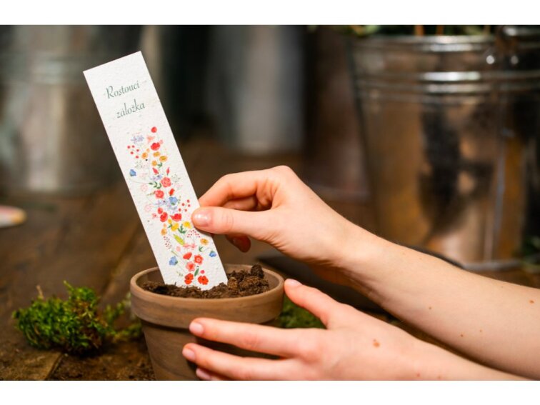 Tato záložka je z rostoucího papíru – po dočtení ji zasaď a nech vykvést květ.