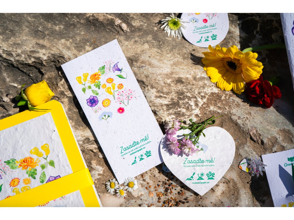 papír obsahující semínka, která po zasazení vykvetou