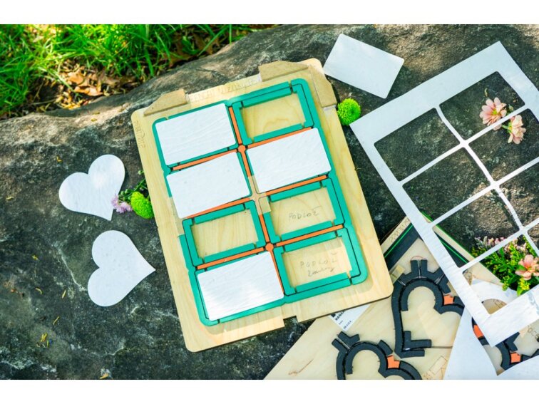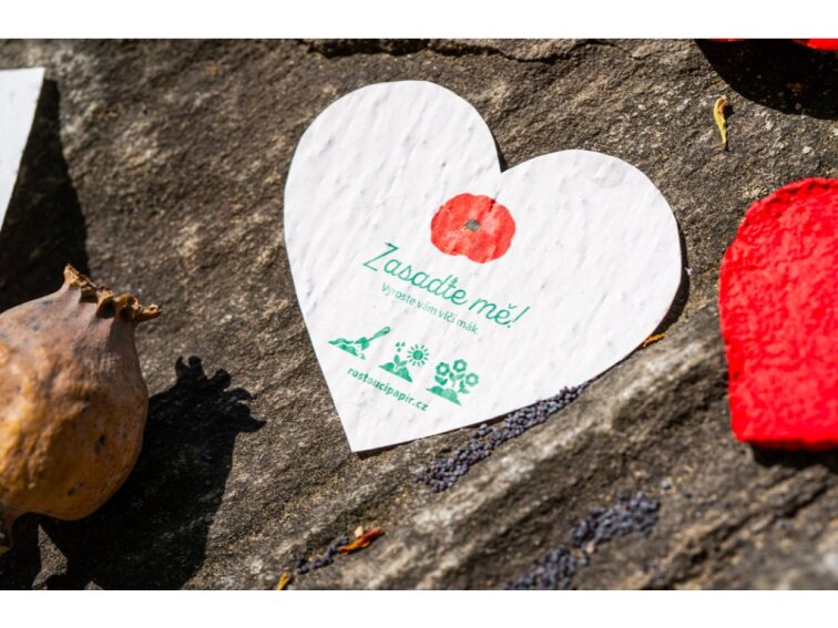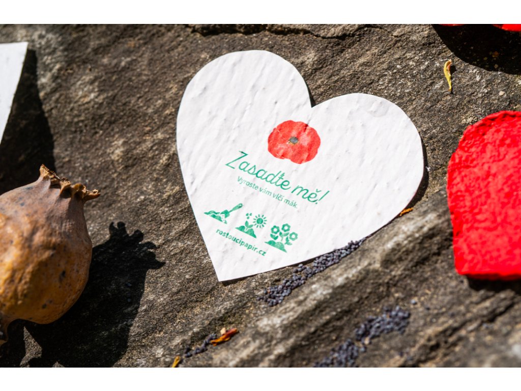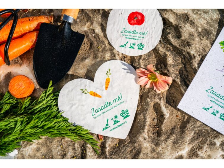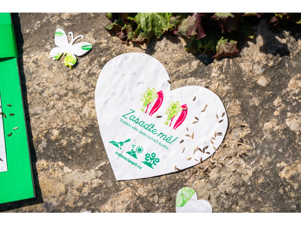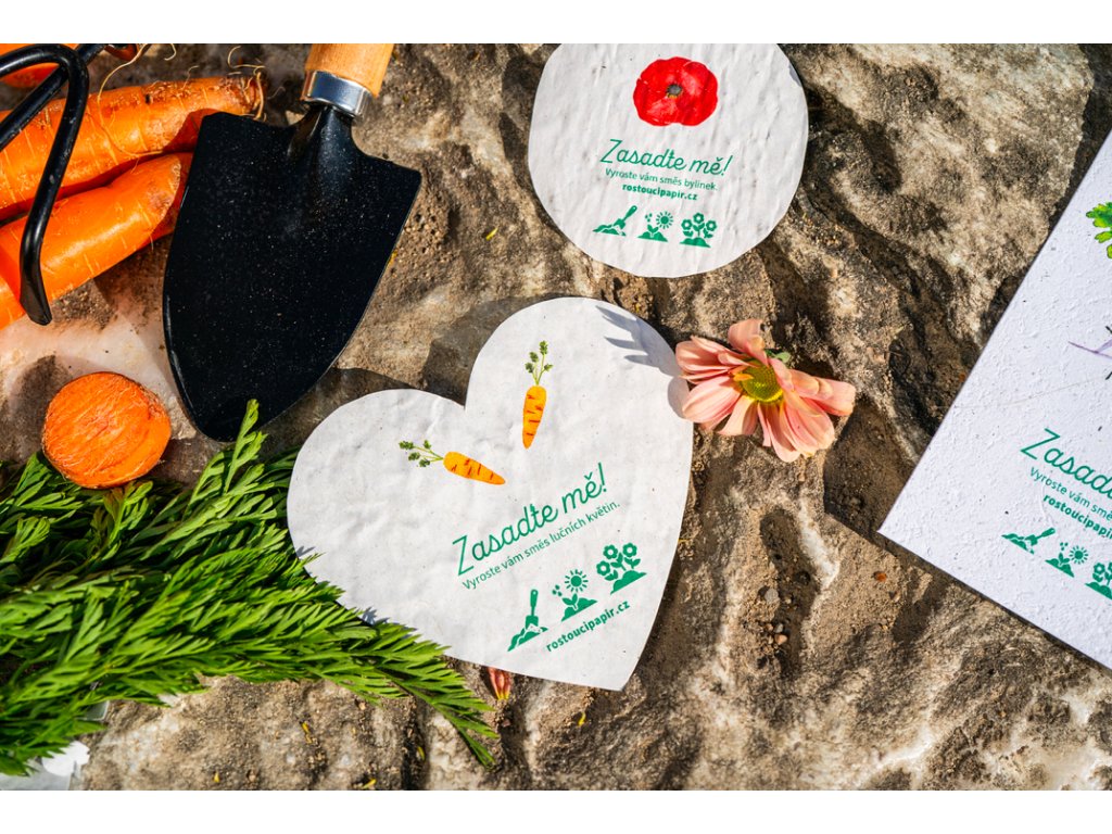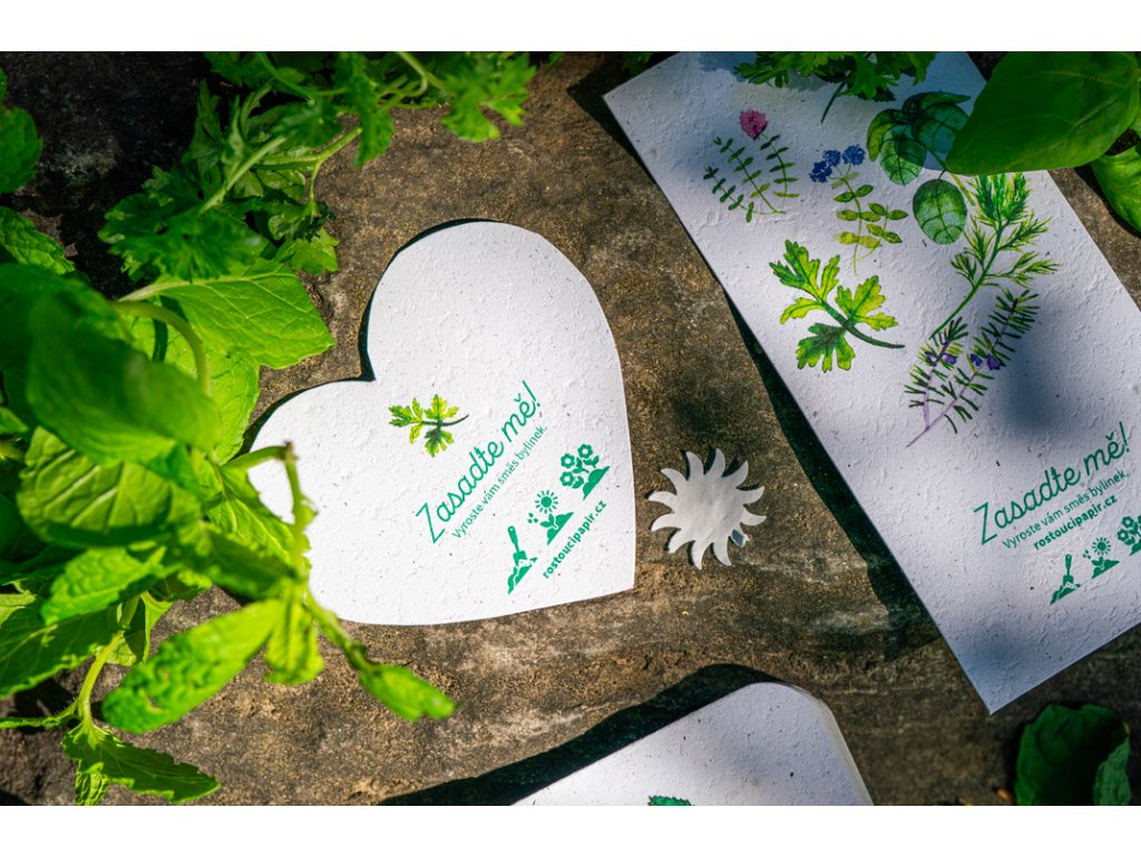 Výseky jsou vyrobené z ekologického papíru se semínky a po použití je lze zasadit do hlíny – z papíru vyroste vlčí mák, bylinky nebo třeba mrkev.
