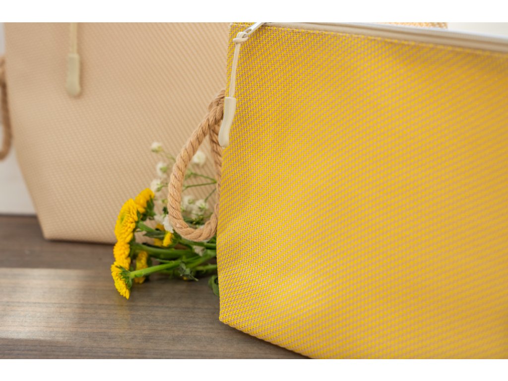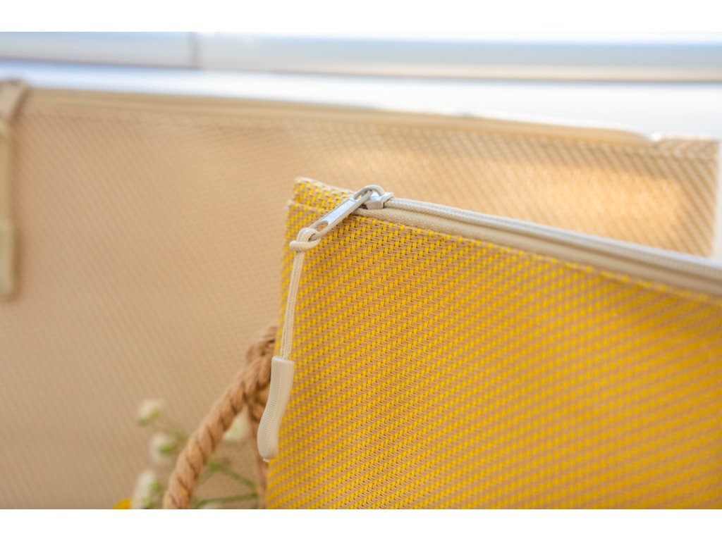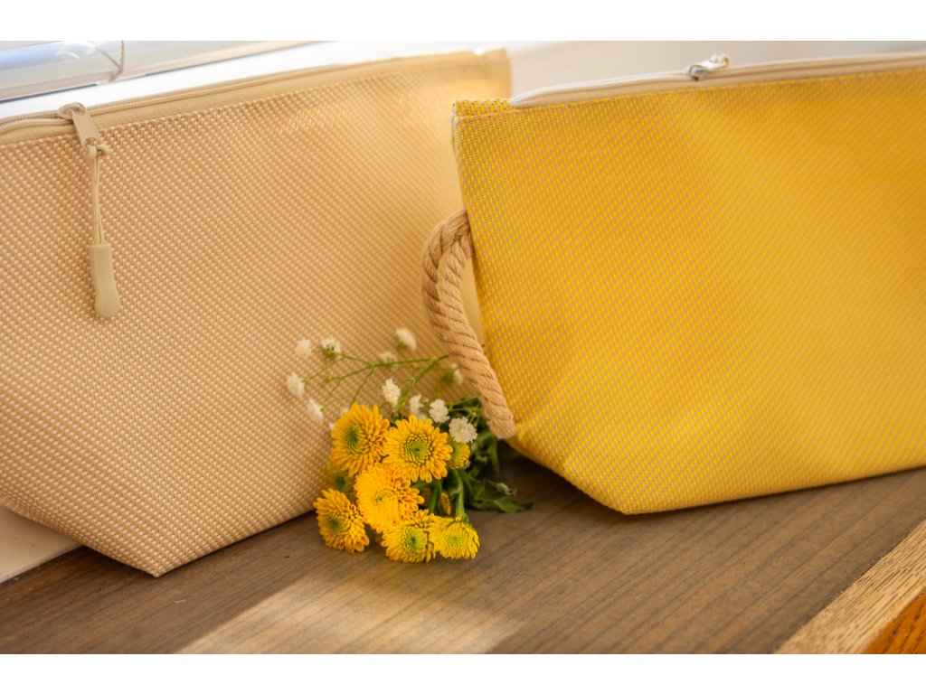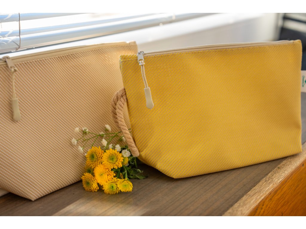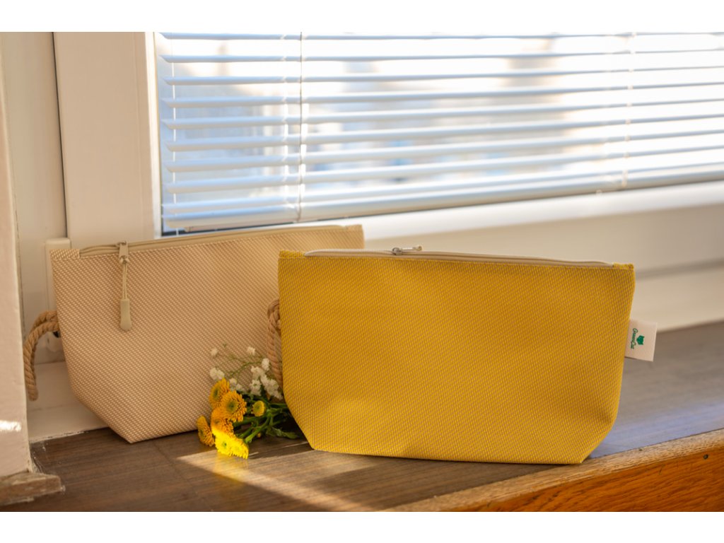 Elegantní a odolná kosmetická taška z recyklované látky z rolet je ideální pro každodenní použití.